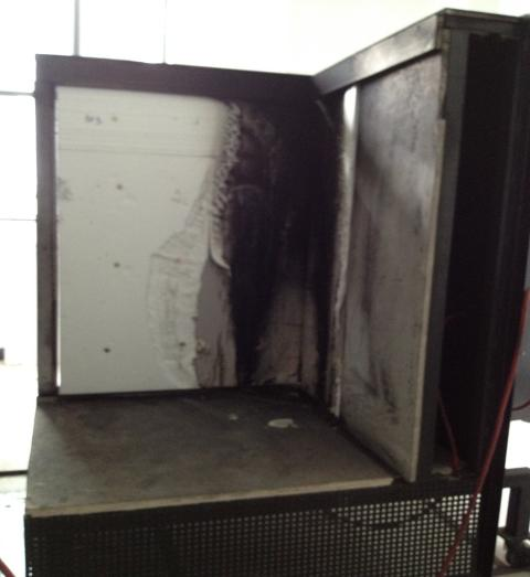 4.2.4 在燃燒室一側設有一個可關閉的門,便于試驗完后清掃房間試驗殘渣。