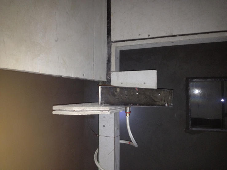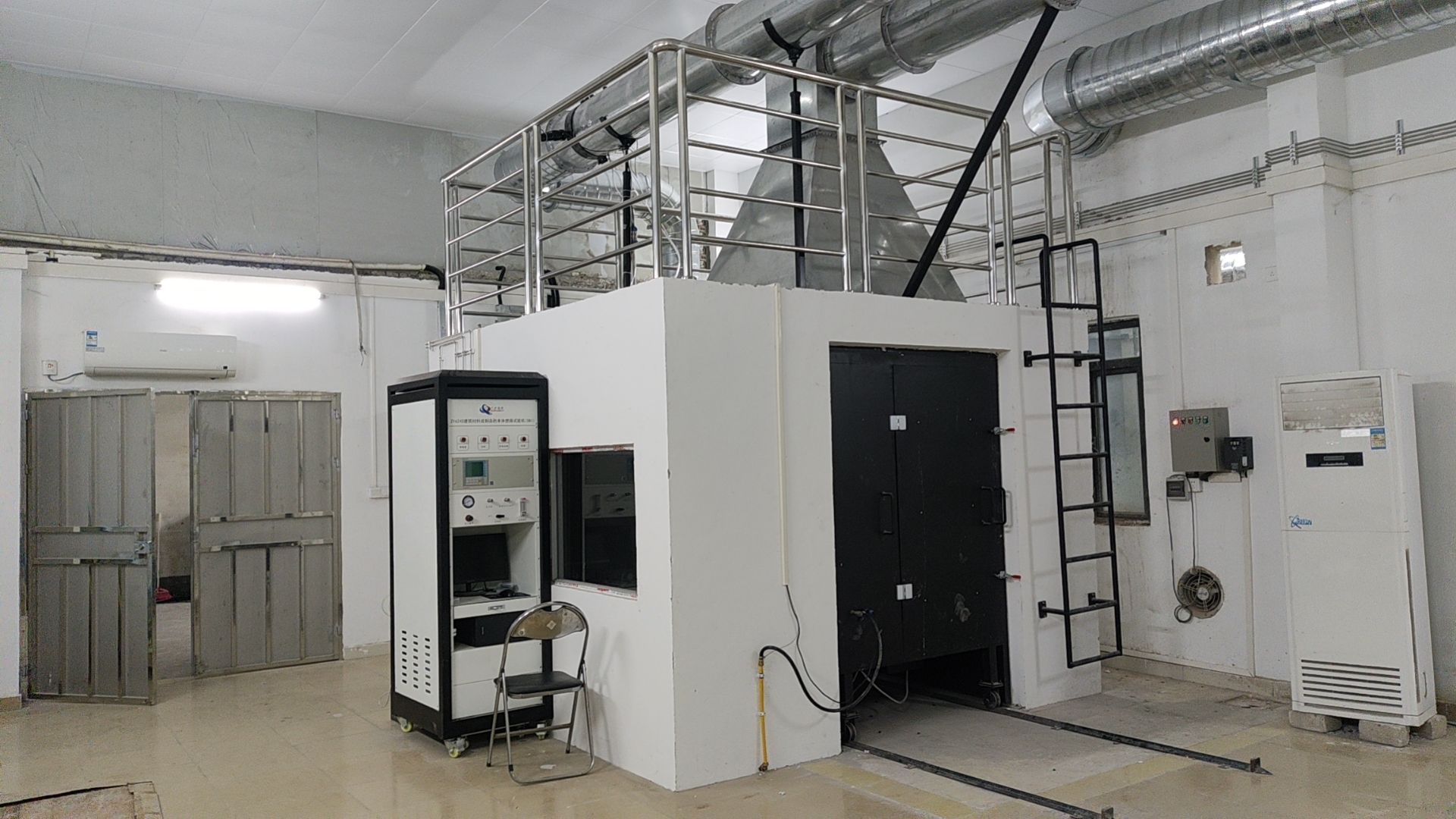 4.2.3 燃燒室一面上設一開口,以便于將小推車從毗鄰的實驗室移入該燃燒室里,開口(框架)的尺寸為:寬度1470mmX高度2450mm,小推車下方有空氣自然進出的空間;垂直試樣板的長翼和短翼各正對的兩面墻上分別設有觀察窗口。