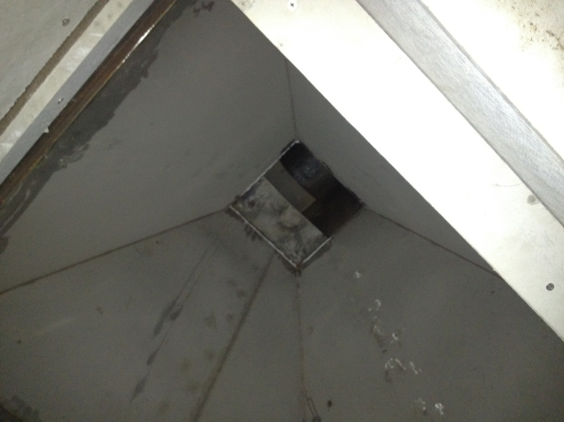 4.4.3 集氣罩:位于框架頂部,底部長x寬1479mm的錐體形狀,內材質為USU304不銹鋼,外材質為鍍鋅板制成,用以收集燃燒產生的氣體;見圖7